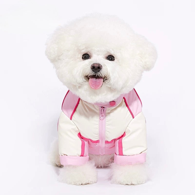 Your pup’s not cold — they’re just casually padded in pink and ready to strut.