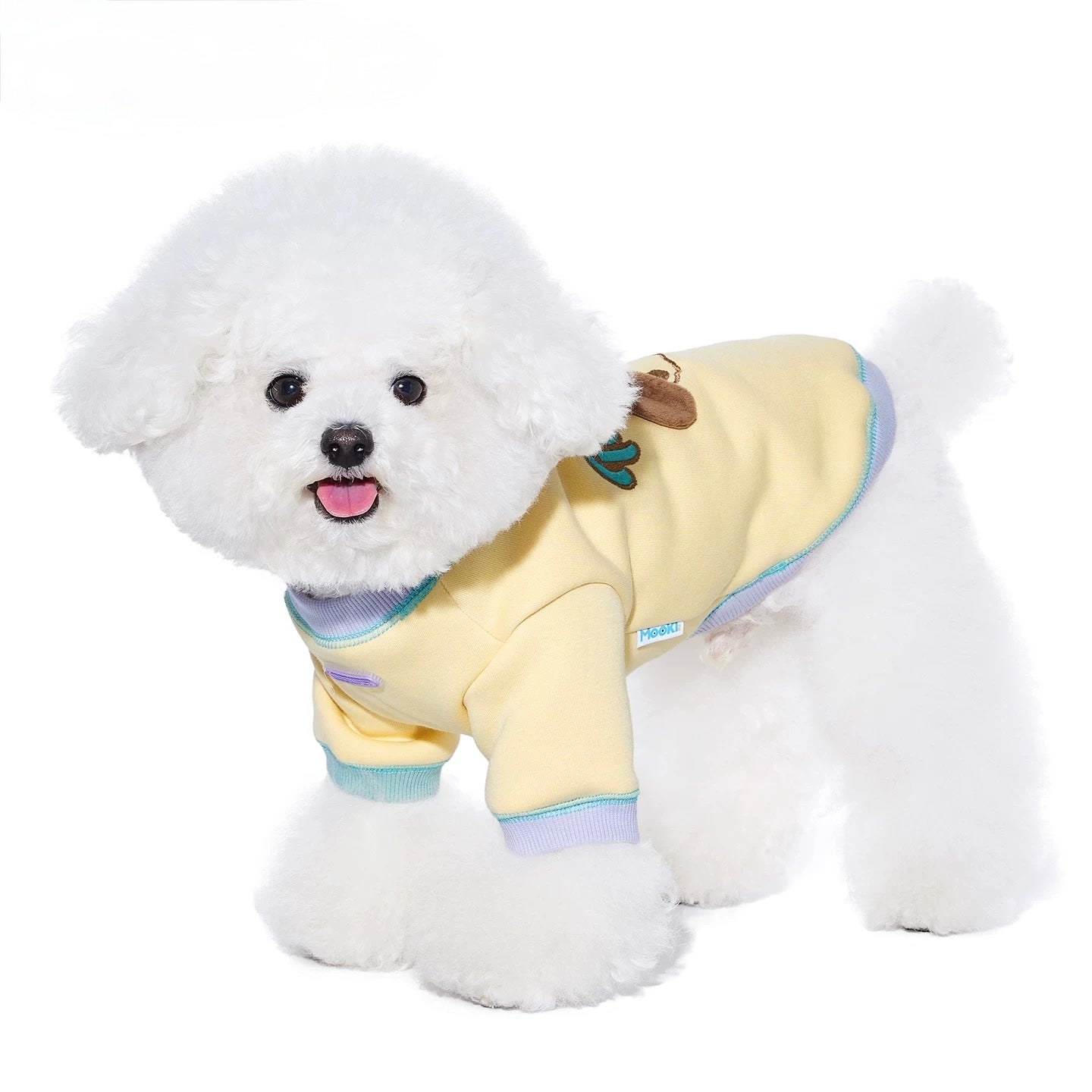 Key Features• Fabric: 66.5% polyester, 33.5% cotton (excluding embroidery thread)• Fleece-backed sweatshirt with heat-retaining carbon fiber blend• Soft, warm and antibacterial• Asymmetric color-blocking with bright stitching• 3D puppy embroidery with plush ears• Classic crewneck fit for easy layering
