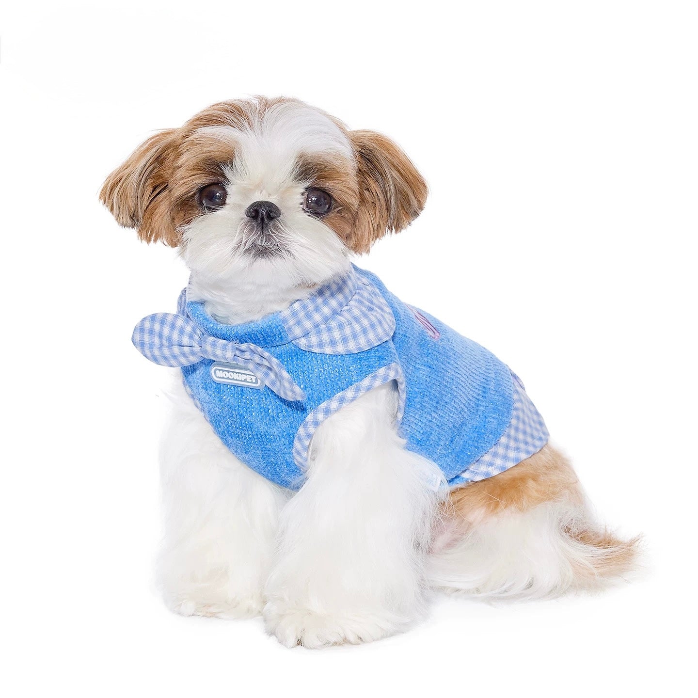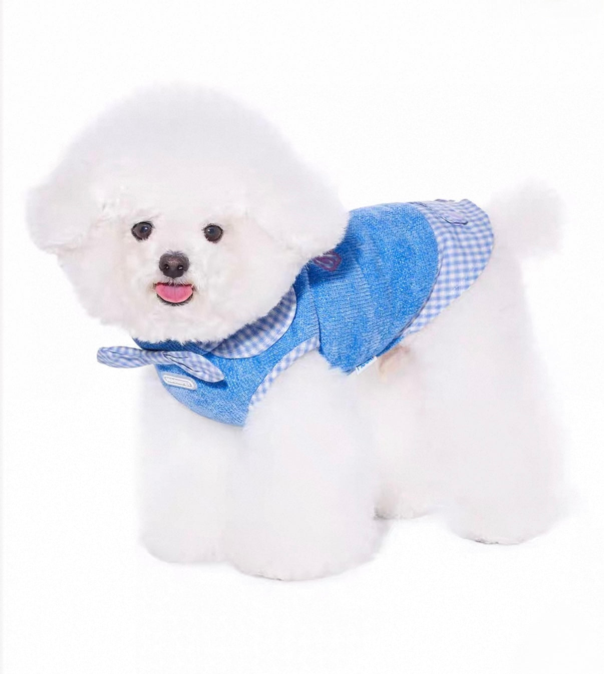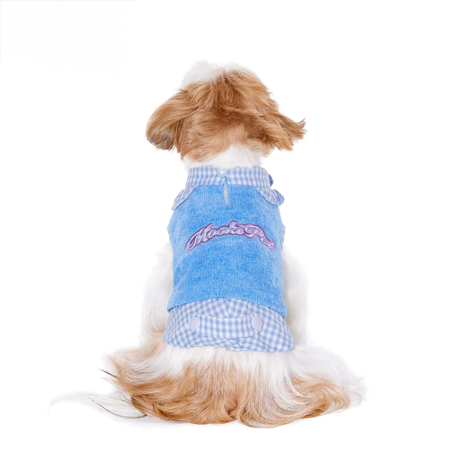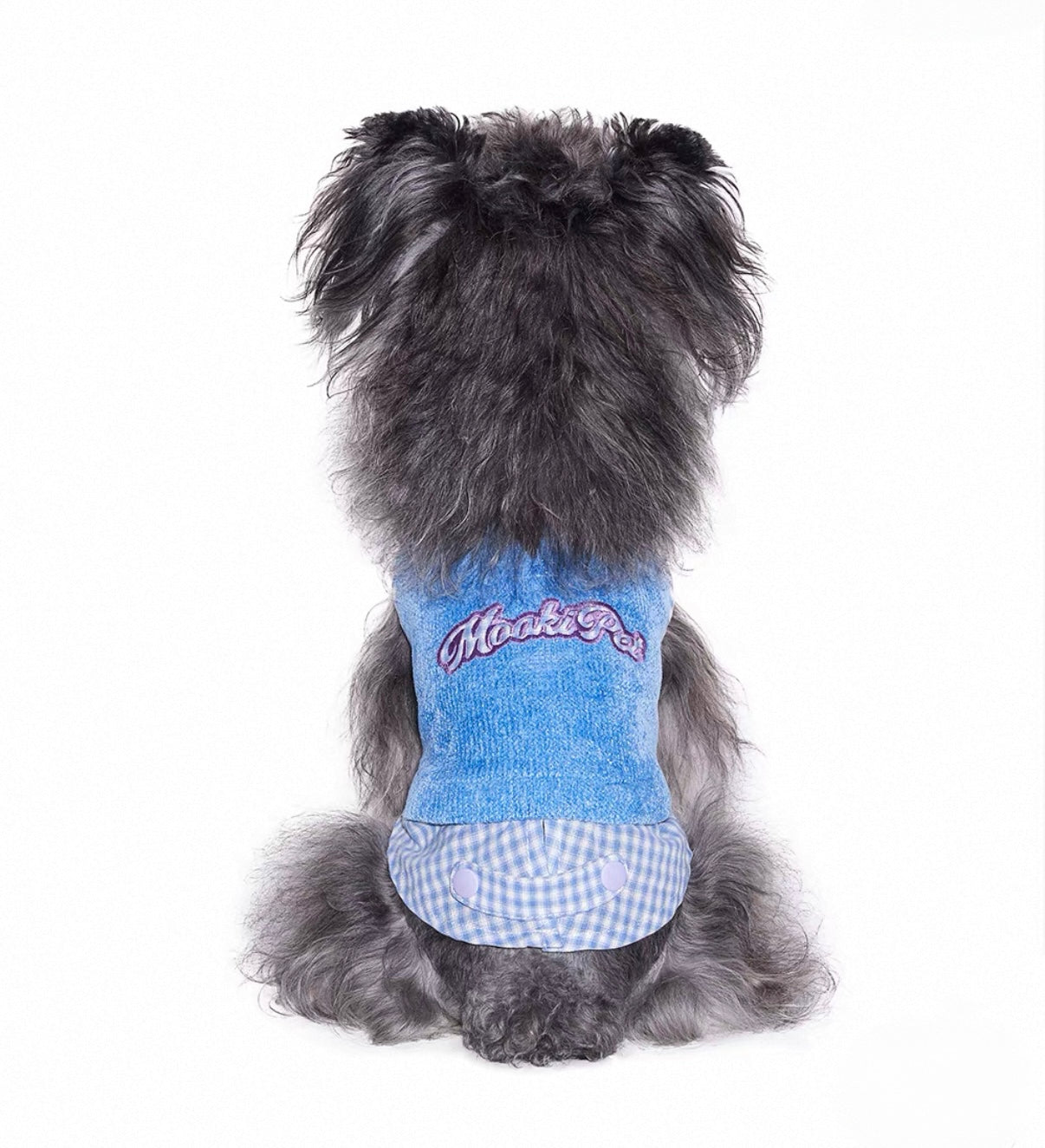 Key Features• Fabric: High-elastic silver thread chenille knit• Composition: 100% polyester (main), cotton blend trim• Soft, breathable, and warm texture• Sleeveless vest with detachable tail buckle for easy wear• Ruffled edges and faux layered design for added style• Contrasting check pattern with purple capsule patch detail