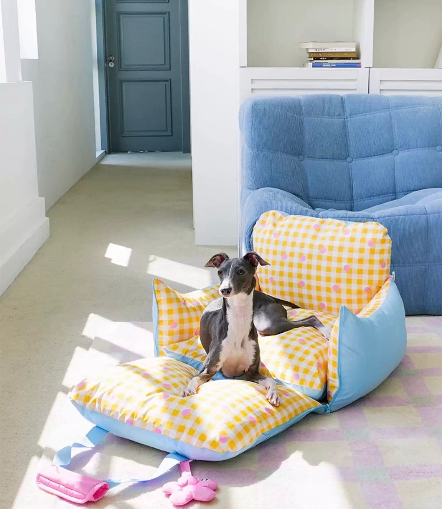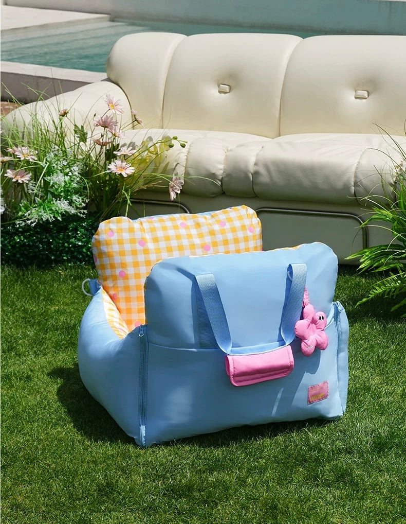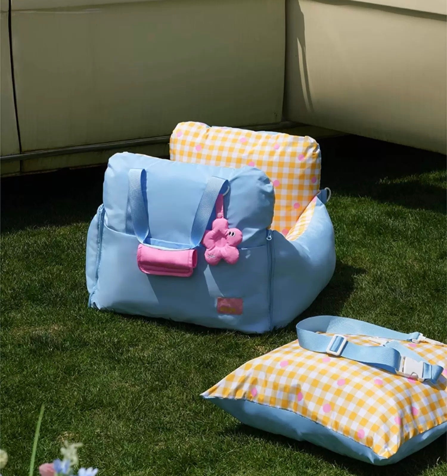 • Design: Dopamine colors, dot-check pattern, plush flower detail