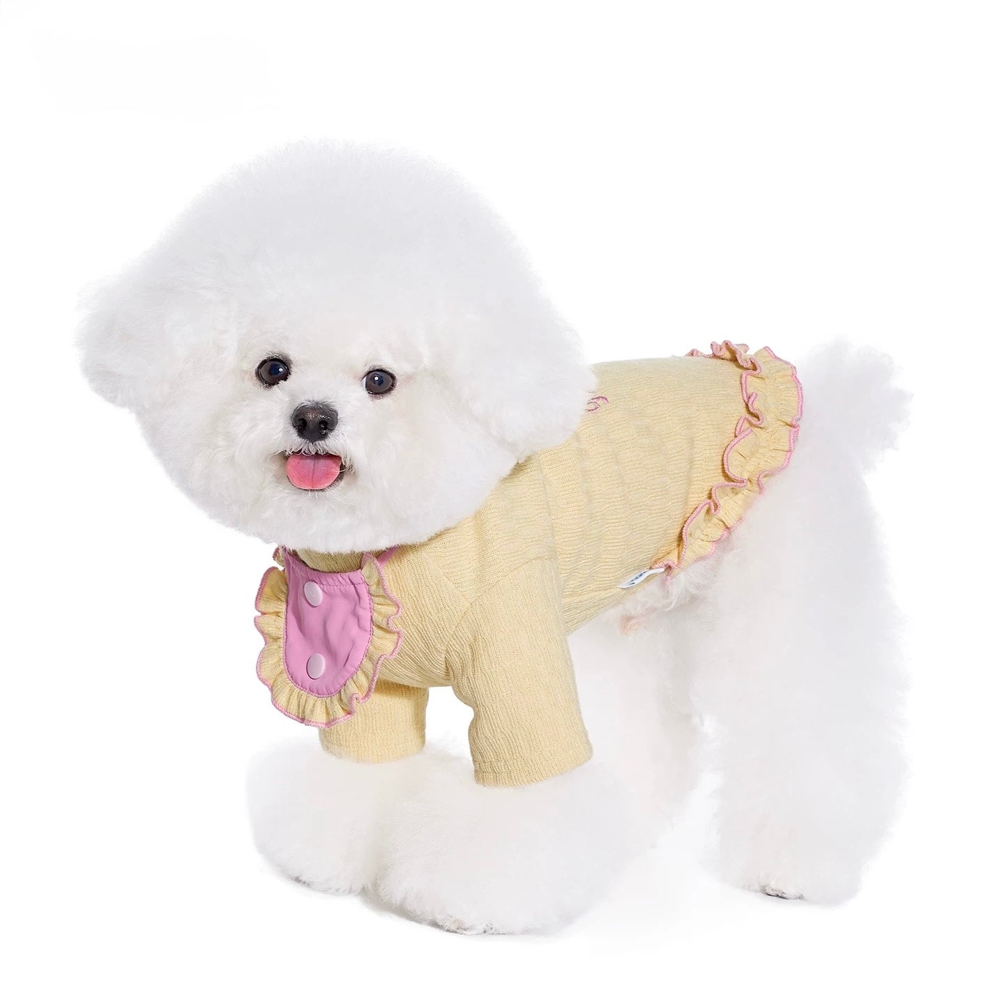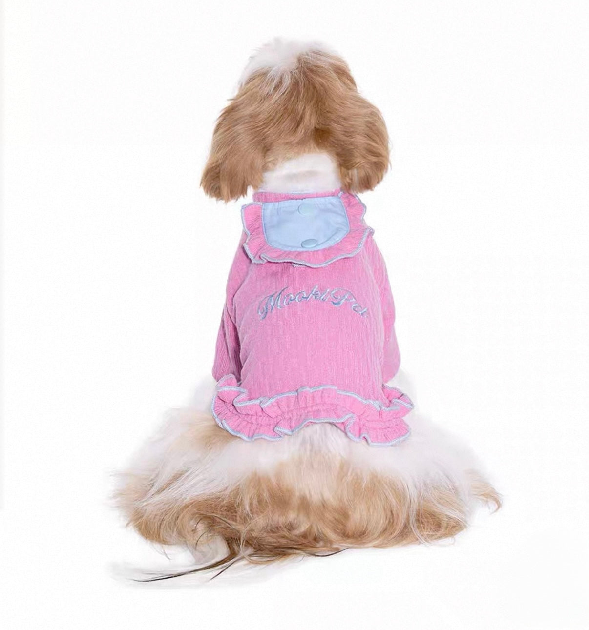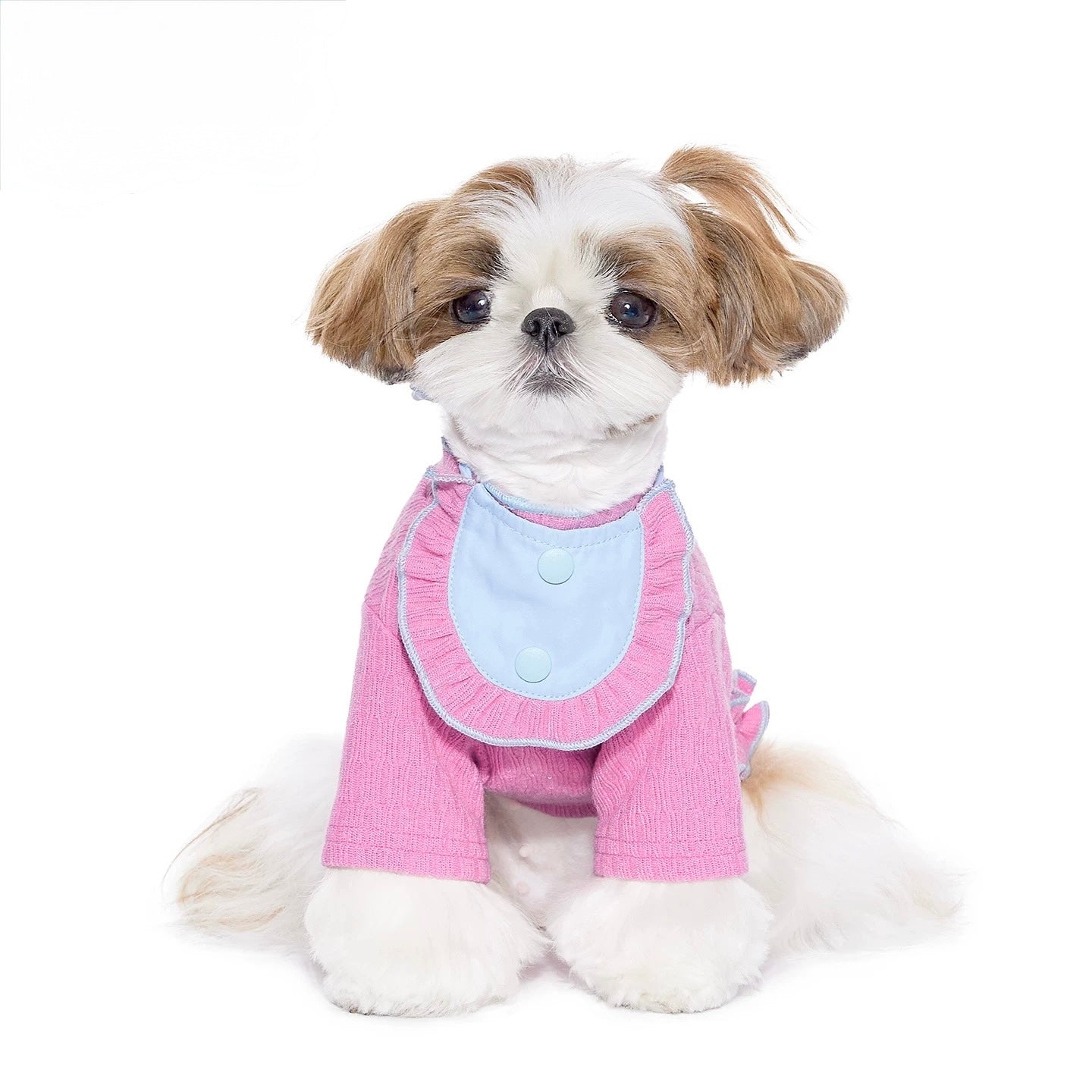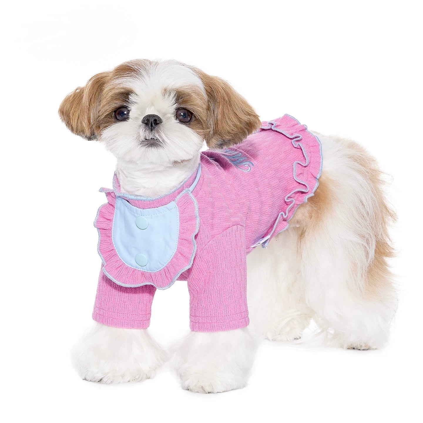 Key Features • 84.4% polyester, 14.5% viscose, 1.1% spandex • Soft textured knit with lace bib • High-neck, long sleeves, ruffled hem • Bib can be worn front or back • Embroidered logo and contrast seams