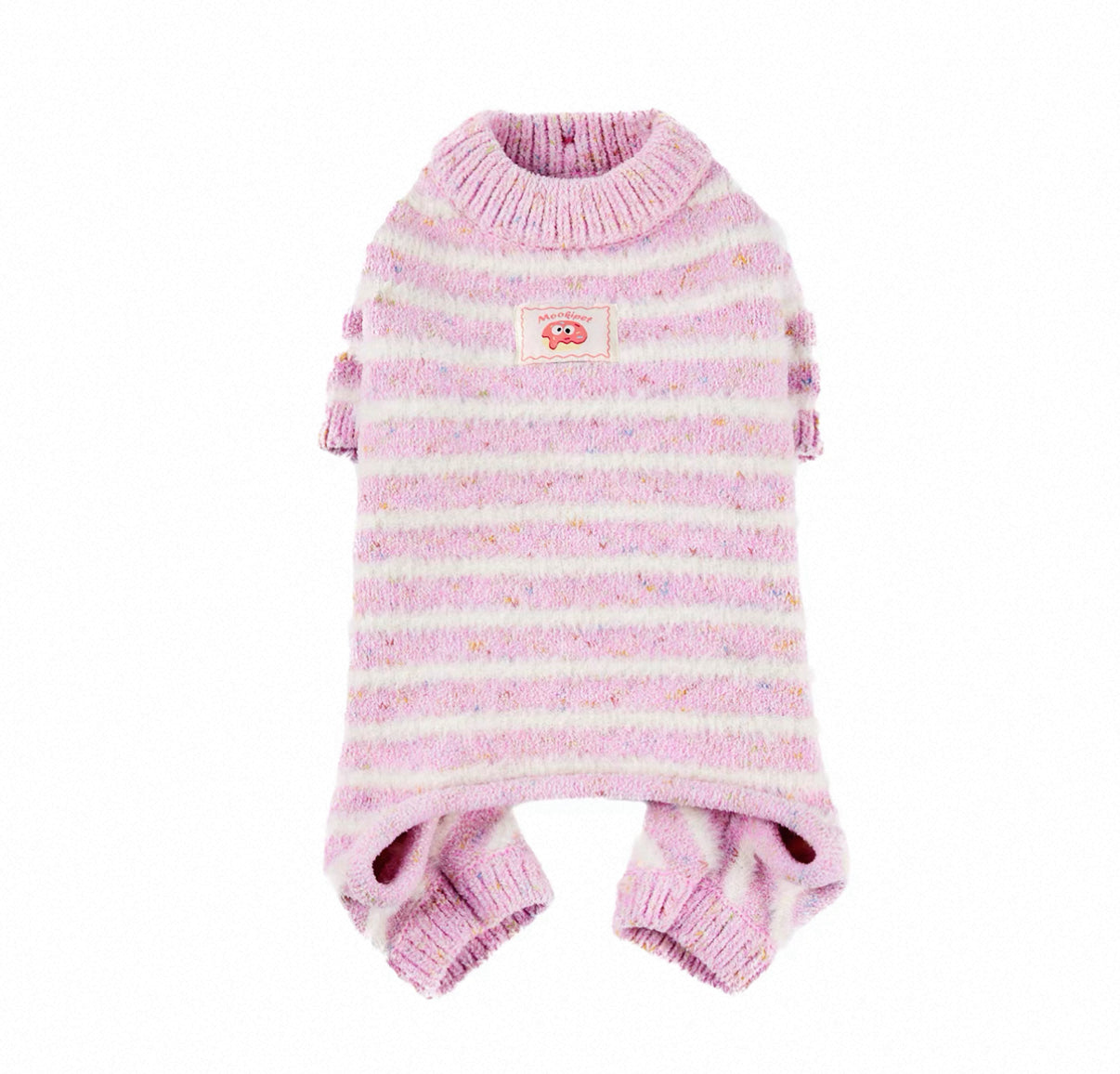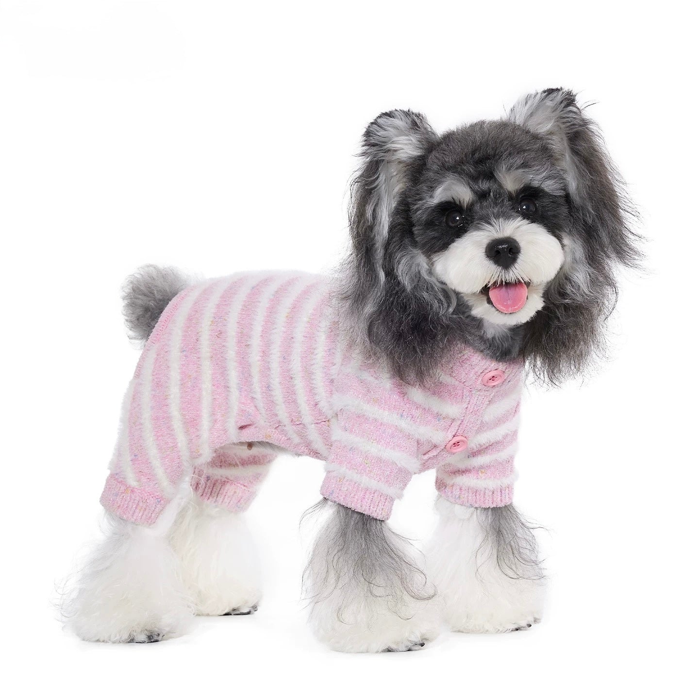 Key Features • Made of 64.4% polyester and 35.6% nylon • Tie dyed faux mink yarn • Warm, thick and wrinkle resistant • Four leg full body fit • White stripes add layered texture • Embroidered fabric patch on the back • Pink button detail on the front • Soft and skin friendly