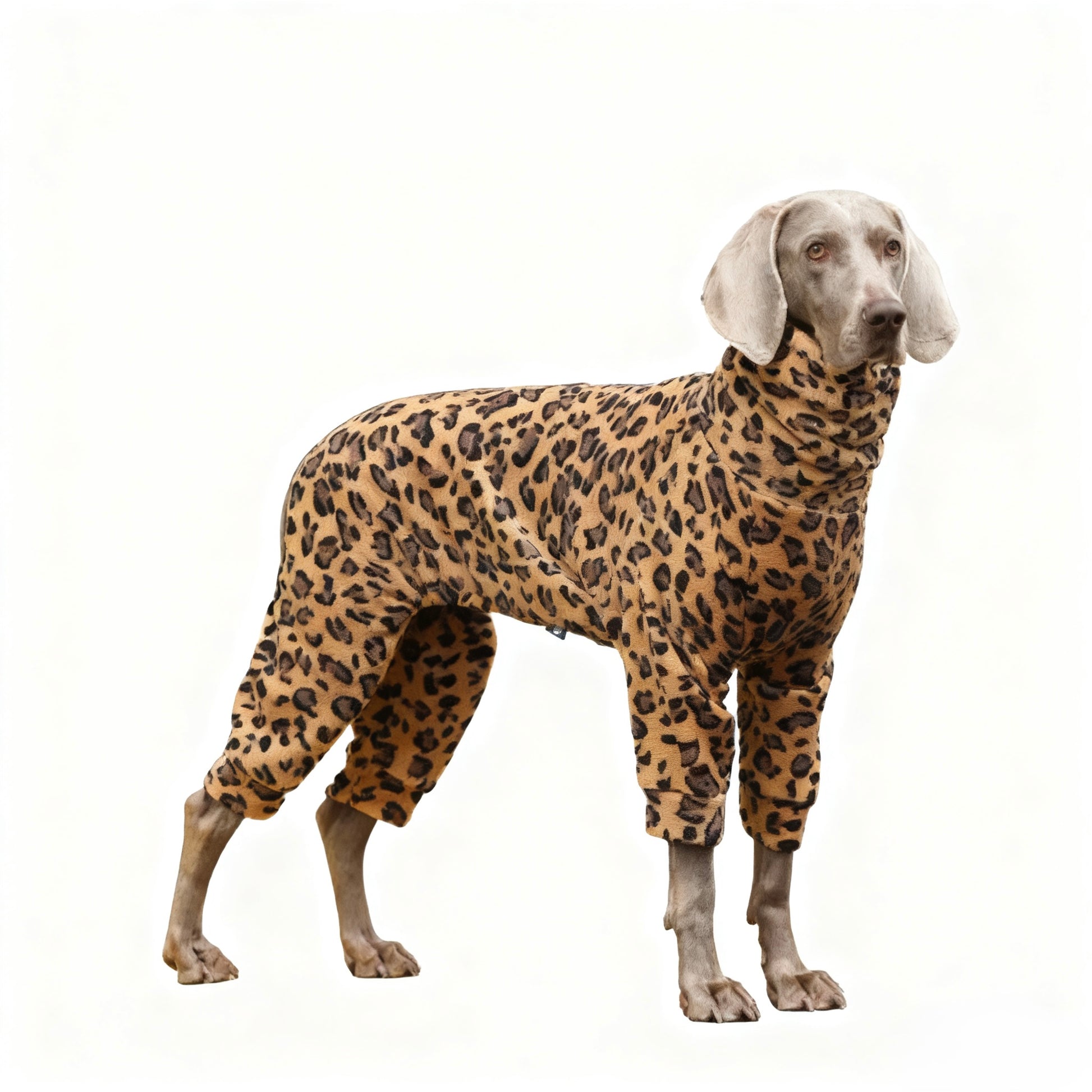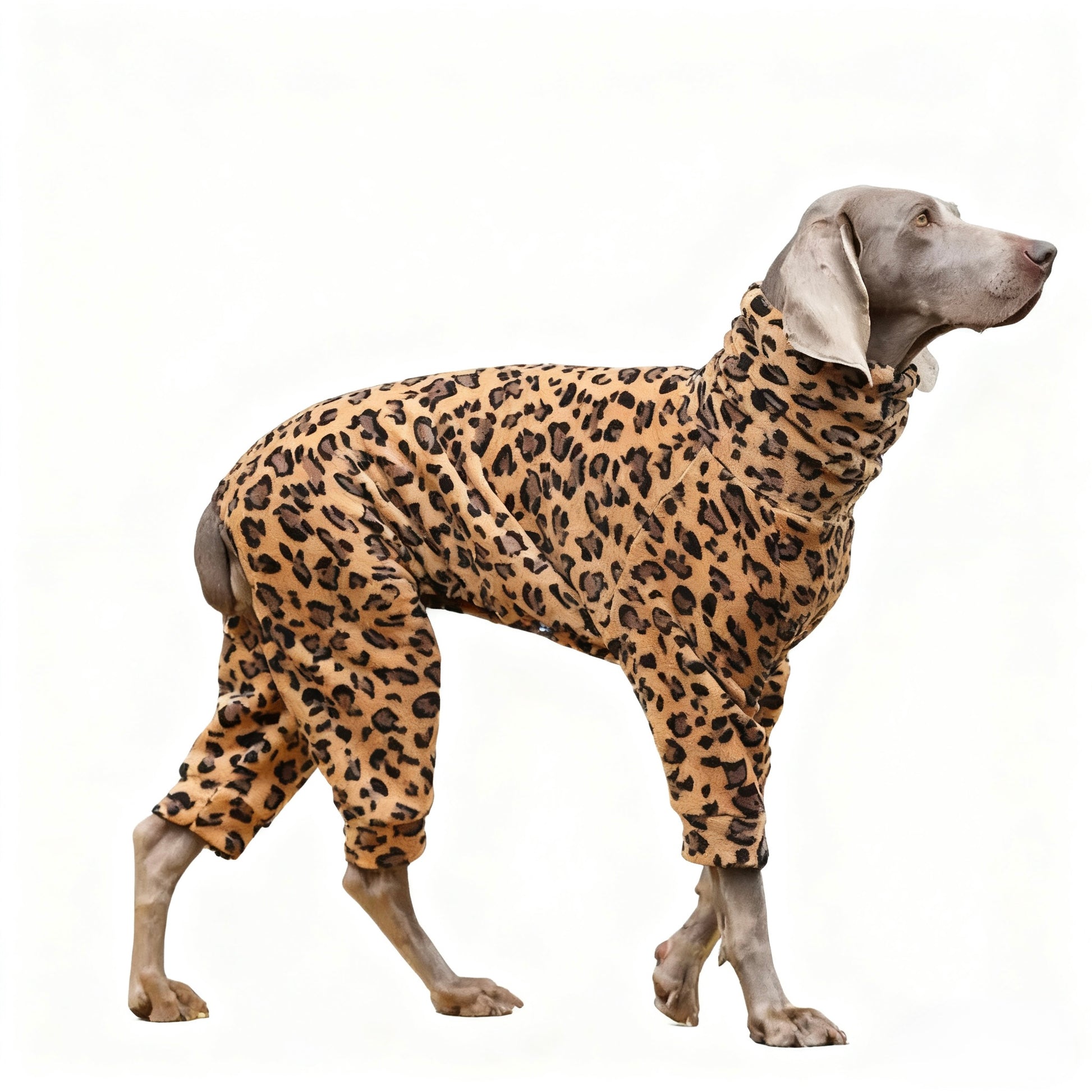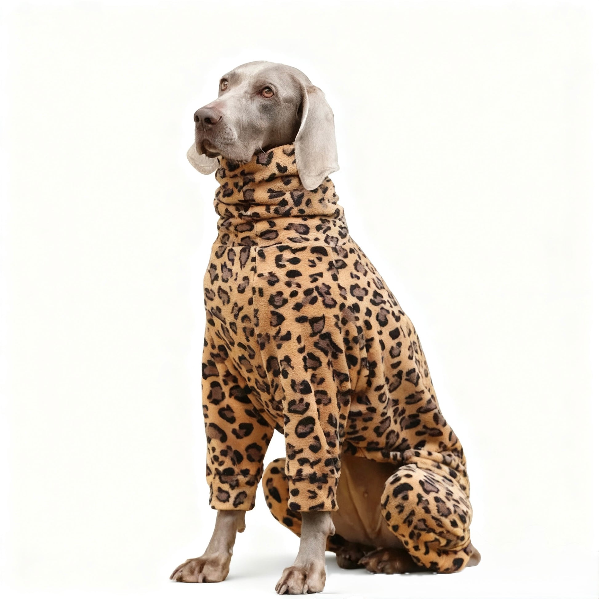 Key Features • Fabric: 100% polyester flannel with all-over leopard print • Full-body coverage including legs and neck for warmth • Turtleneck design windproof and cozy • Elastic cuffs for secure fit and easy movement • Soft, thick texture for cold weather comfort